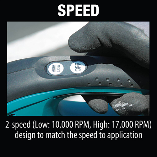 مصمم بسرعتين (10000 و 17000 دورة في الدقيقة) للتحكم مثالي بالسرعة.
