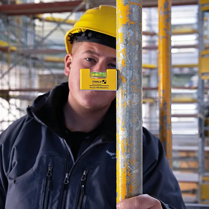 يعد ميزان ستابيلا 17953 Pocket Pro المغناطيسي الصغير أداة صغيرة ومحمولة يمكن تركيبها بسهولة على الأسطح المعدنية. يبلغ طولها 7 سم فقط، ويمكن دائمًا حمل ميزان الماء الاحترافي الصغير الحجم معك. تتميز بهيكلها القوي المصنوع من الألومنيوم وأسطح التسوية القويه على شكل حرف V ، مع مغناطيسات أرضية نادرة قوية جدًا، تشكل زاوية 90 درجة وهذا يجعل عملية المحاذاة والتسوية لجميع الهياكل الفولاذية، وخاصة الأسطح المستديرة، مهمة سهلة. يتم ضمان الدقة من خلال استخدام قارورة الدقة ستابيلا . هذا المستوى مثالي لجميع تلك المهام في الأماكن الضيقة التي يتعذر الوصول إليها.