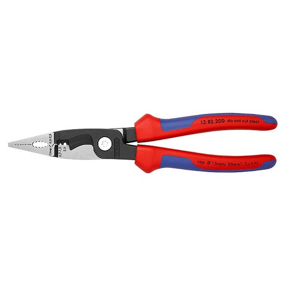 - Functions: 6 functions in one pair of pliers (grip, bend, deburr, cut cable, strip, crimp end sleeves)