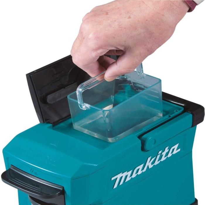 صانعة القهوة اللاسلكية لديها القدرة على العمل ببطارية CXT / بطارية LXT – سهولة سكب الماء ، مع قابلية إزالة خزان المياه والاحتفاظ به بدون ترطيب – خاصية الحماية من الغليان الجاف والإغلاق التلقائي في حال عدم كفاية الماء