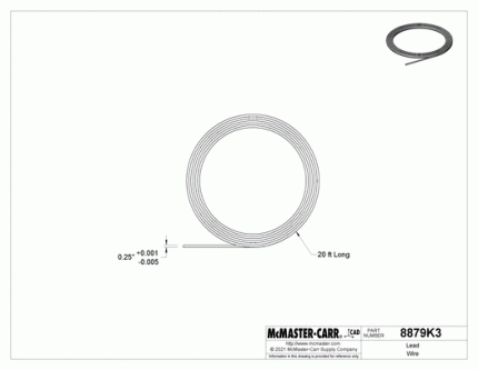 سلك رصاص عازل ، قطره 0.25 بوصة ، طوله 20 قدمًا ، وزن البكرة 5 رطل