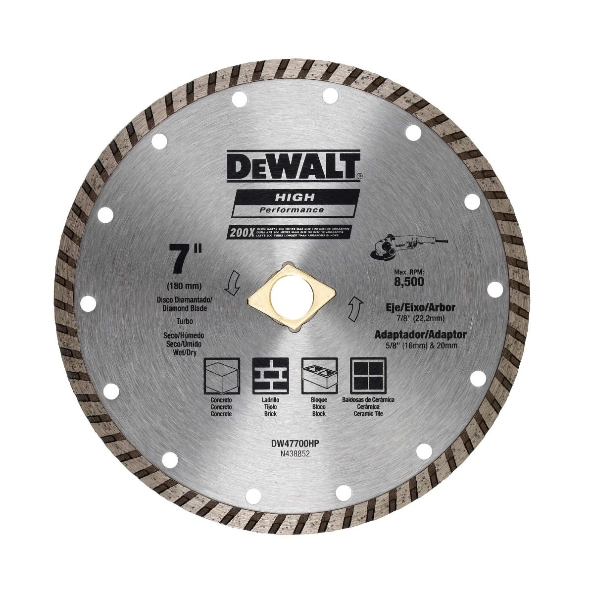 أقراص التوربو (مثل DW47400HP، DW47900HP) تقدم توازنًا متعدد الاستخدامات بين السرعة والتشطيب الأنعم للقطع للأغراض العامة في الخرسانة والحجر والطوب.