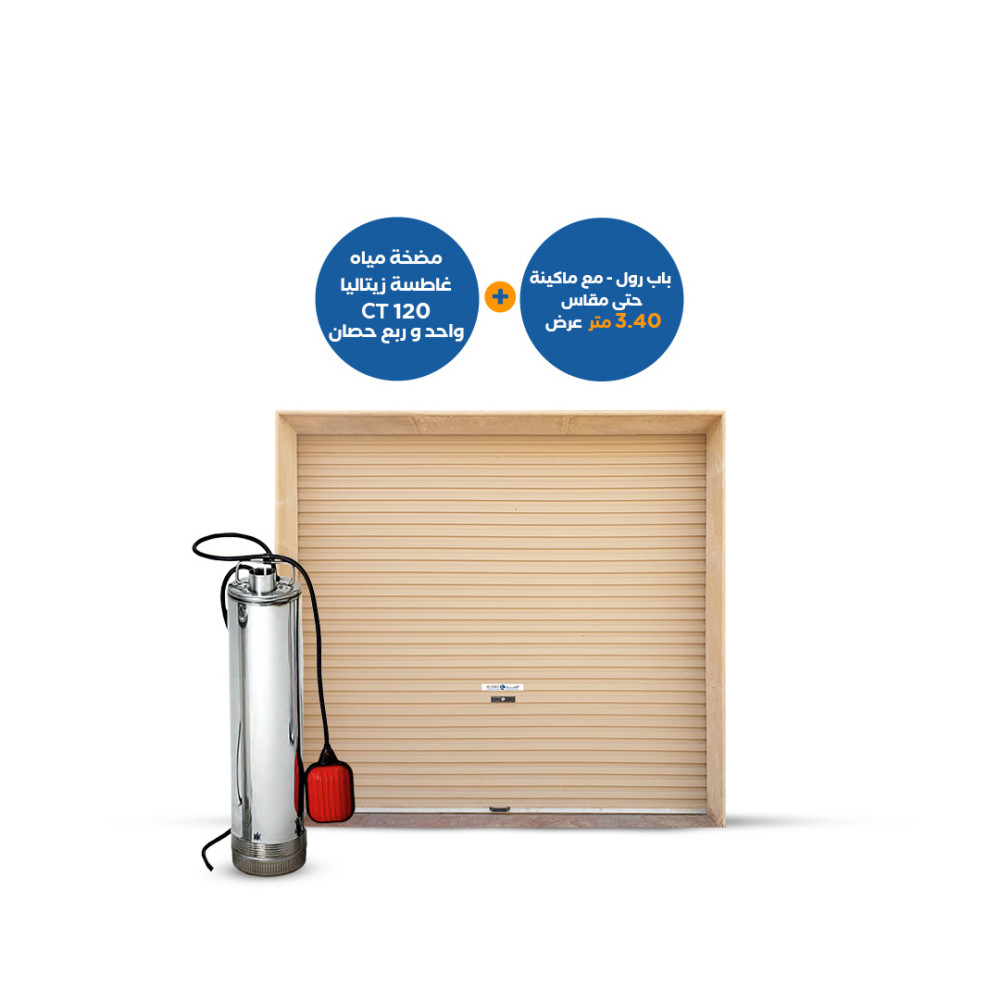 باب رول مع ماكينة حتى عرض 3.40 متر + مضخة غاطسة زيتاليا CT 120 بقوة 1.25 حصان