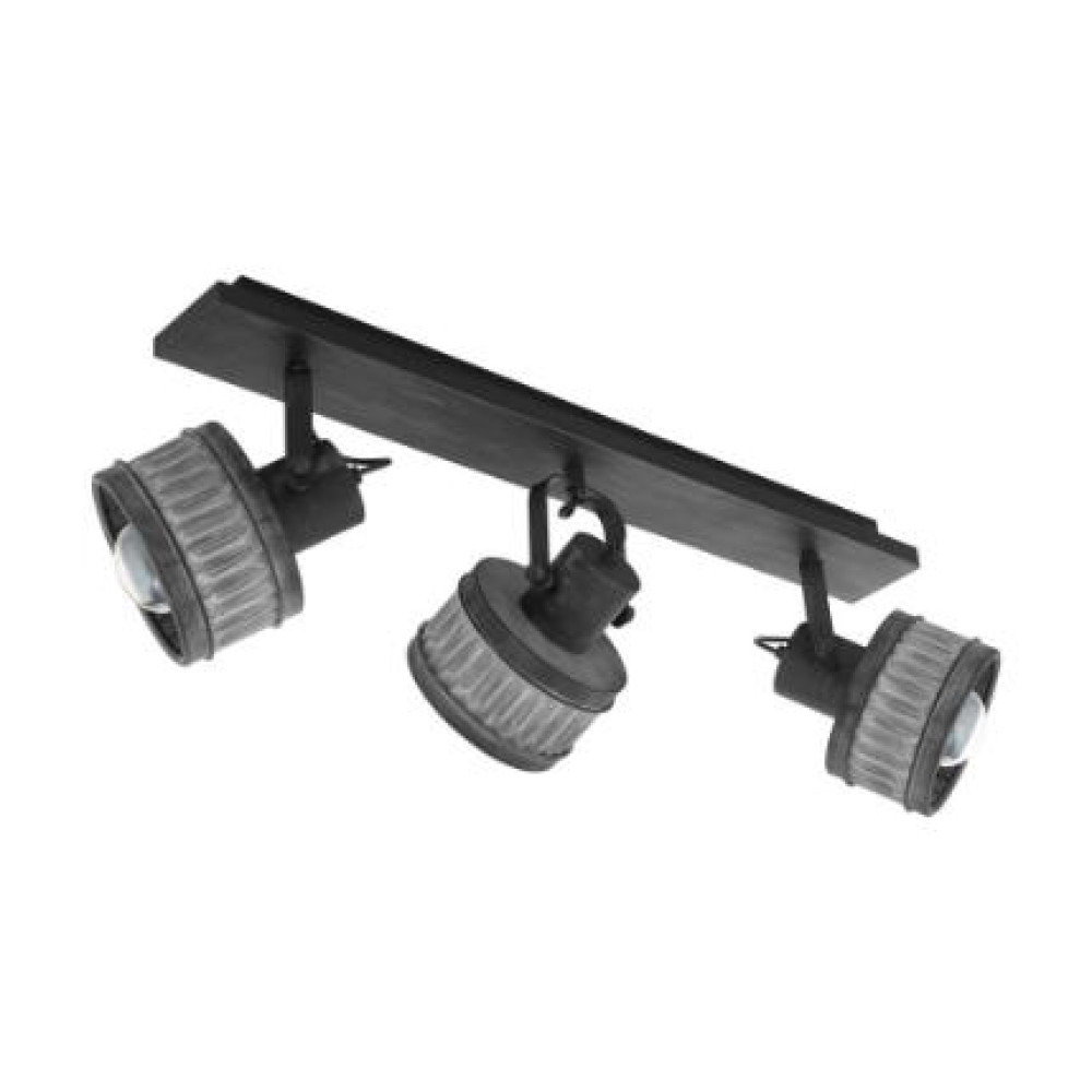 مصباح السقف EGLO توروك مكون من 3 لمبات بتصميم عتيق وصناعي. يتميز بلمسة معدنية باللون الأسود والرمادي القديم، مثالي لغرف المعيشة أو غرف النوم. متوافق مع لمبات E27
