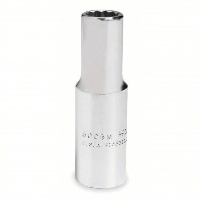 حبة سوكيت، حجم قاعدة التثبيت 3/8 بوصة، مقاس 15 مم، 12 نقطة، فولاذ، عمق عميق، طبقة خارجية من الكروم