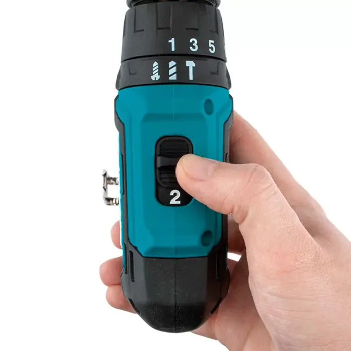 مفتاح تشغيل يمين يسار: بعد الحفر ، يؤدي ضبط اتجاه الريشه على عكس اتجاه عقارب الساعة إلى دورانه في عكس اتجاه عقارب الساعة لمساعدته على الخروج من الفتحة بشكل نظيف وسهل. ستستخدم أيضًا الوضع العكسي لإزالة البراغي والمثبتات الأخرى بسرعة.