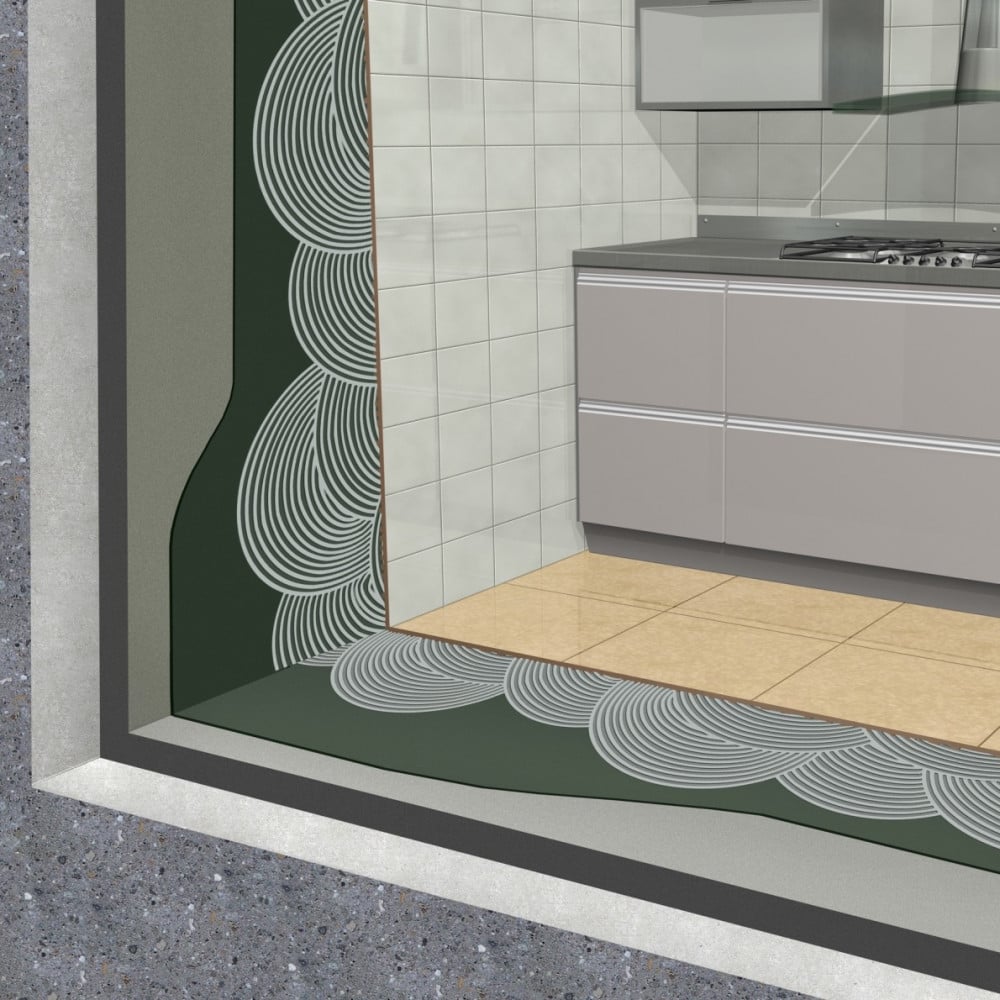 دهان أسمنتى بوليمرى عازل للماء مكون من مركبين للحماية ويستخدم للإنشاءات الخرسانية والمونة لمنع رشح الماء .