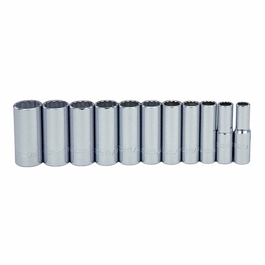 نمط / حجم اللقم العميقة / عمق 12 نقطة: 1/2 بوصة ، 9/16 بوصة ، 5/8 بوصة ، 11/16 بوصة ، 3/4 بوصة ، 13/16 بوصة ، 7/8 بوصة ، 15/16 بوصة ، 1 بوصة ، 1 1/16 بوصة ، 1 1/8 بوصة