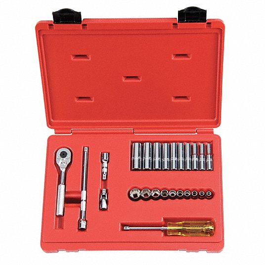 تأتي مجموعات مقابس SAE هذه مع أدوات محرك ومجموعة متنوعة من المقابس لمجموعة من أحجام التثبيت.