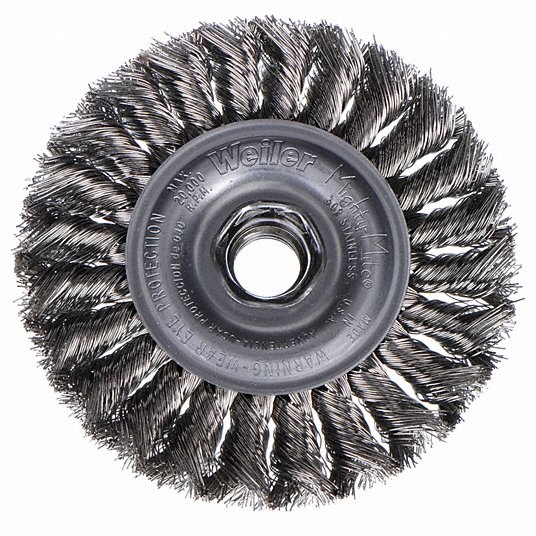 فرشاة عجلة سلكية معقودة, 4 بوصة, 0.014 بوصة قطر السلك, 7/8 بوصة طول حافة الشعر الخشن