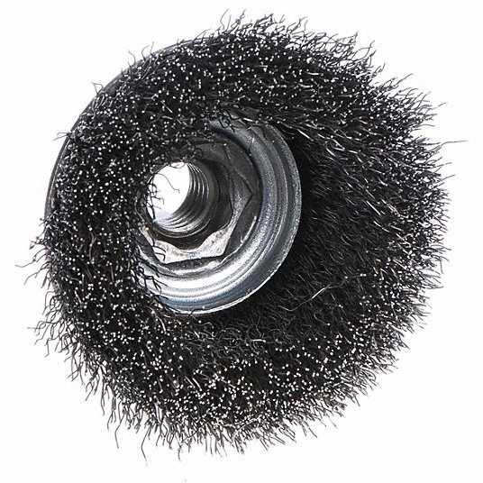 فرشاة كأسية ذات سلك مجعد 4 بوصة, 0.02 بوصة قطر السلك, 1 3/8 بوصة طول الحافة ذات الشعر الخشن 1PAK1