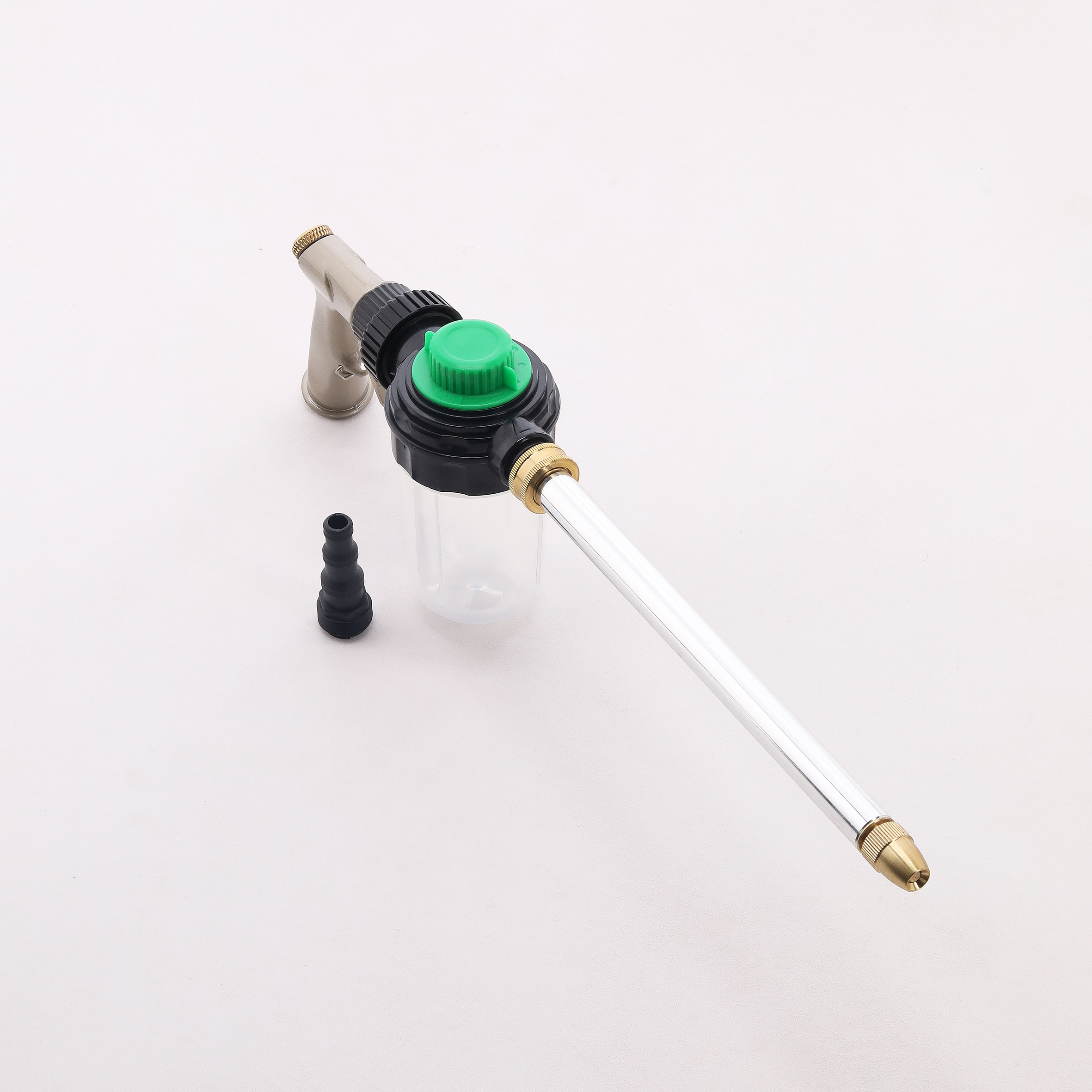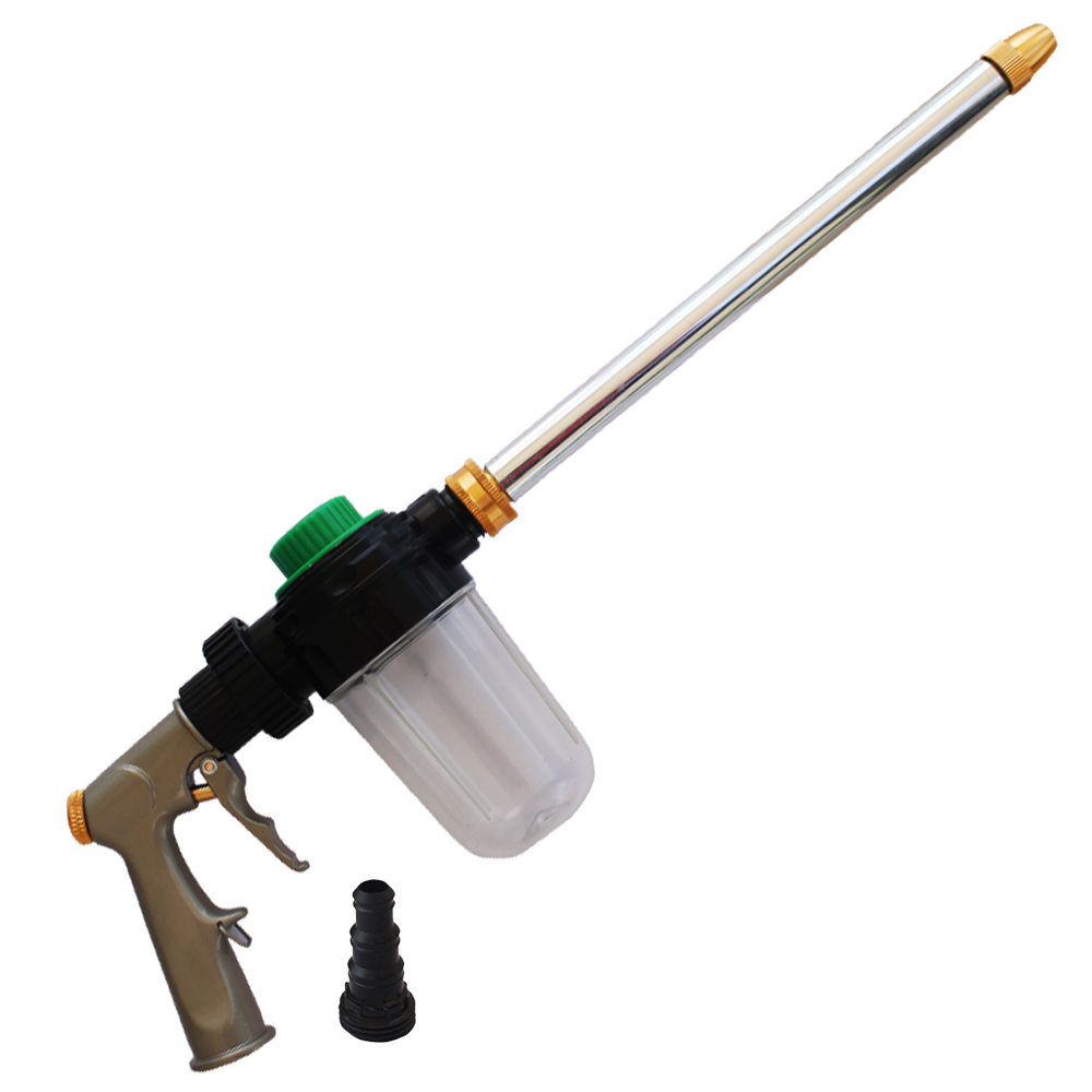 رشاش بيد من الحديد مع زجاجة صابون لدفع المياه بقوة لمسافات طويلة ومتعدد الاستخدامات ويركب مع خراطيم 1/2″ – 3/4″