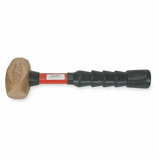 مطرقة ثقيلة غير قابلة للشرارة, وزن الرأس 2 1/2 رطل, عرض الرأس 1 3/4 بوصة, الطول الكلي 12 بوصة.