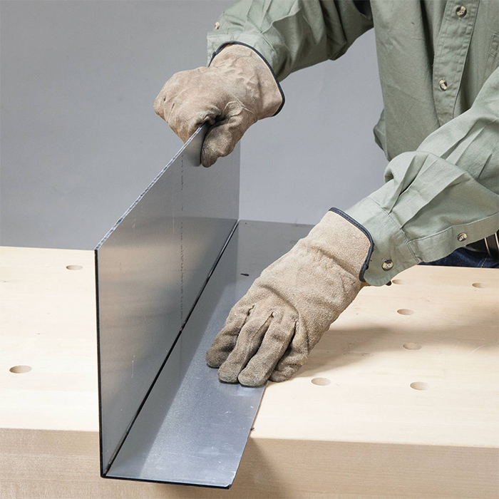 شفرة قاطعة بزاوية 90 درجة يمكنك قطع الحواغ في المواد المركبة المصنوعة من الألومنيوم، مثل الألواح الجدارية الخارجية، باستخدام حافه على شكل حرف V.