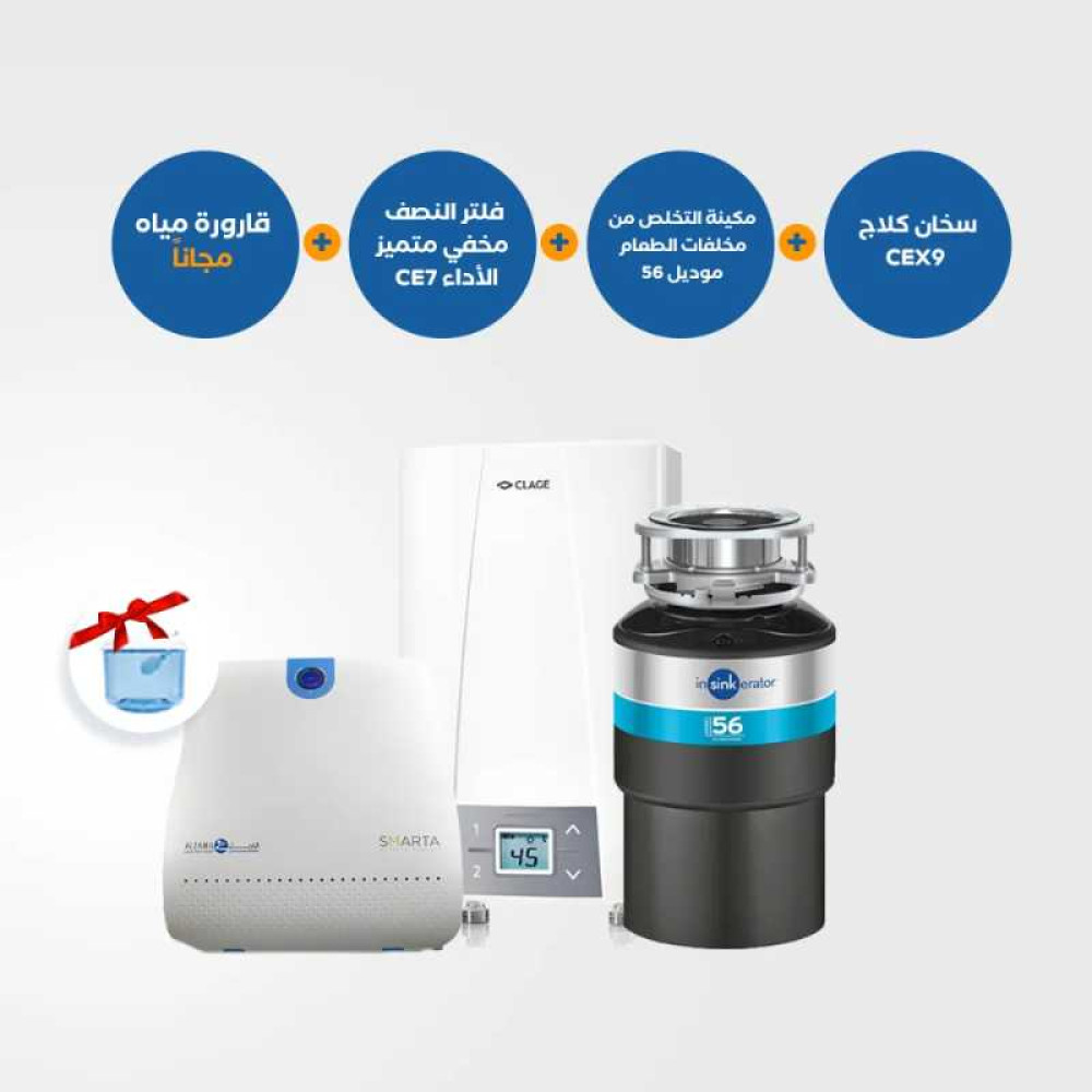 158-Food Waste Disposer 56+ Instantaneous Water Heater CLAGE-CEX9+ Water Purifier – SMARTA +RO water Bottle