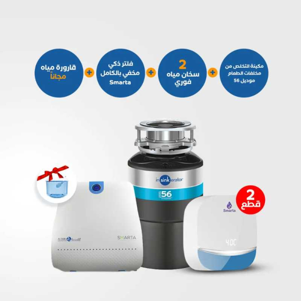 168-Food Waste Disposer 56+ Instantaneous Water Heater Smarta 7 series #2+ Water Purifier – SMARTA – Puricom+ free RO water Bottle