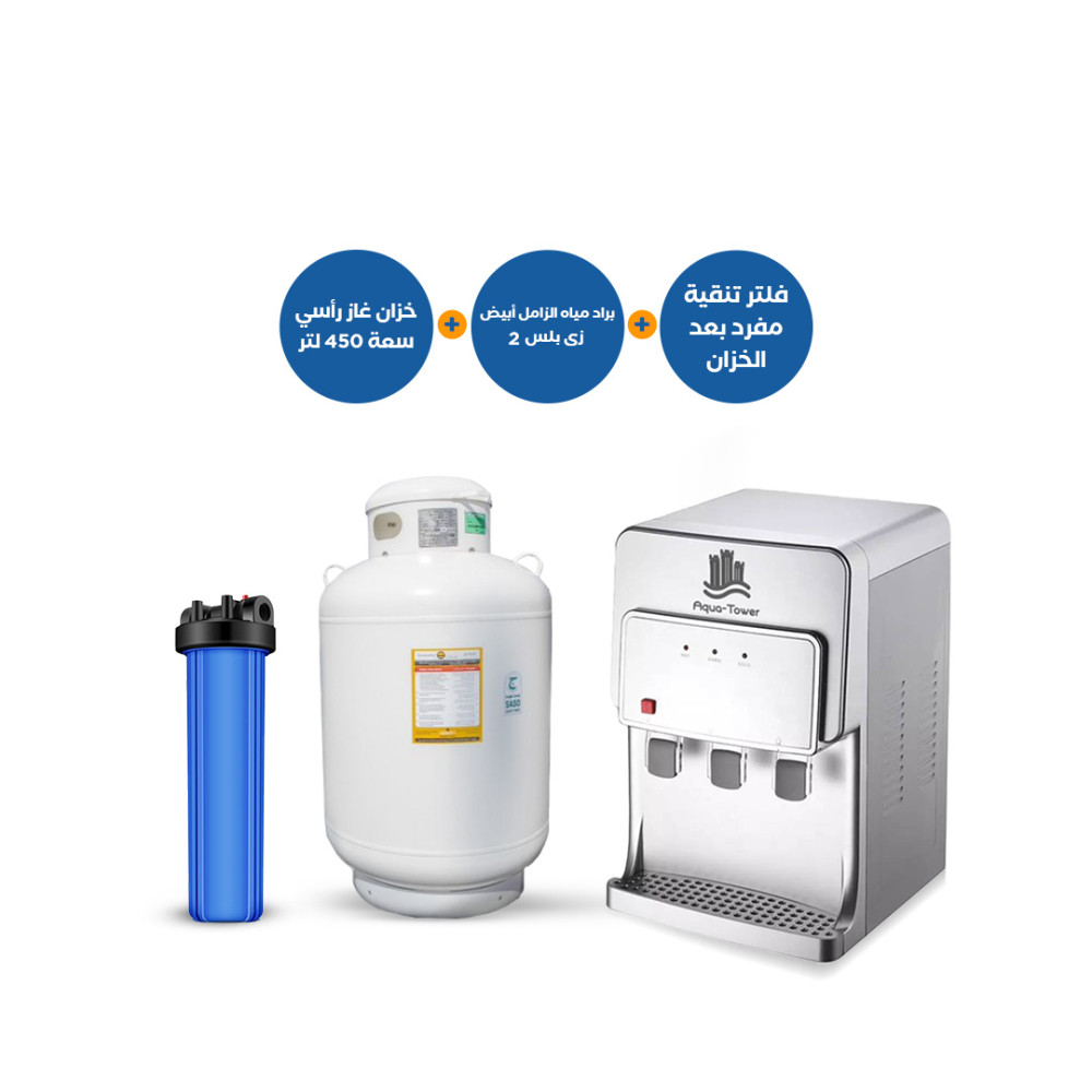 231-Gaz Tank Vertical Capacity 450 Ltr +Water Dispenser White (Aquatower – Zee Plus M2)+Aquatower Jumbo Big Blue Single Filter