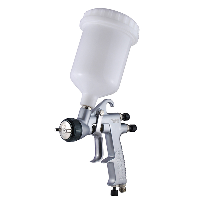 The Sagola Classic Pro XD Gravity Gun is supplied with a 1.40 Needle and Nozzle and an HVLP Conventional (CA) High Volume Low Pressure Aircap. Ideal for use with sanding surfaces. The Sagola Classic PRO XD is a “Jack of all trades”, and shines when spraying fillers and sanding surfacer products. Its compact stainless-steel matt chromed body is complimented by its internal air distributor, and absence of plastic parts. Its quality is visible, provides a quick and easy clean up with very little maintenance, and backed by a 3-year warranty.