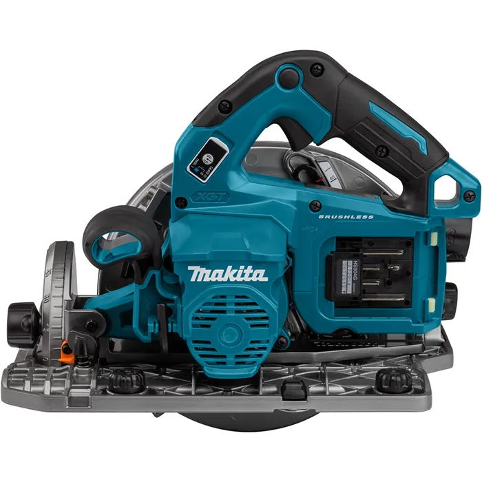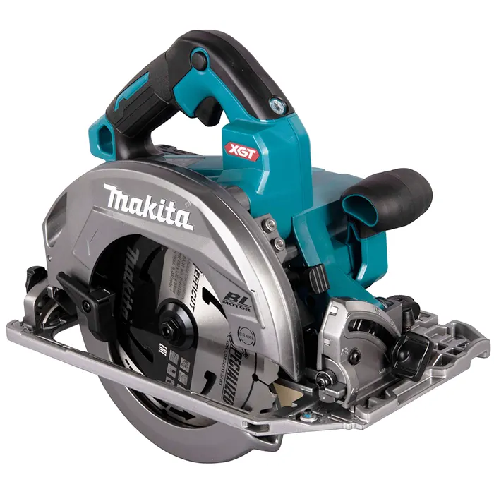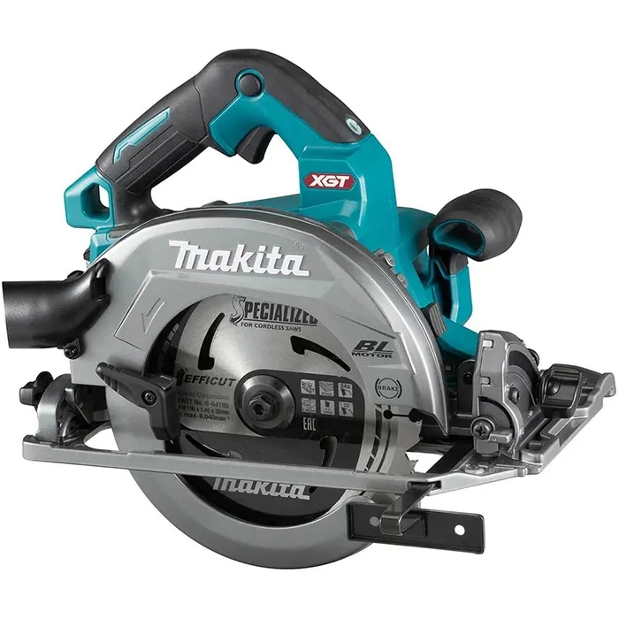 The Makita Cordless Circular Saw HS004GM1 Cordless Circular Saw 90mm, is powered by a 40V lithium-ion battery and an efficient Brushless motor with high power that delivers 6,000 RPM for fast cutting. This Cordless Circular Saw has excellent balance, high power, and lightweight maneuverability, and offers a large cutting capacity (62.5 mm at 90°) and bevel capacity (0° – 48°) with a positive stop at 45°, positive stops at commonly used bevel angles allows for fast and accurate bevel adjustment, and The Cordless Circular Saw has an accurate alignment of the saw blade and cutting line. Additionally, Automatic torque Drive Technology adjusts speed and torque for optimal performance, Extreme Protection Technology provides improved water resistance by channeling water and dust, and Auto Start Wireless System for wireless power on and power off communication between the equipped tool and dust extractor once connected via AWS, brake for maximum productivity and increased operator safety, Soft Start to ensure smooth starting and built-in LED light to illuminate the work area for better visibility.