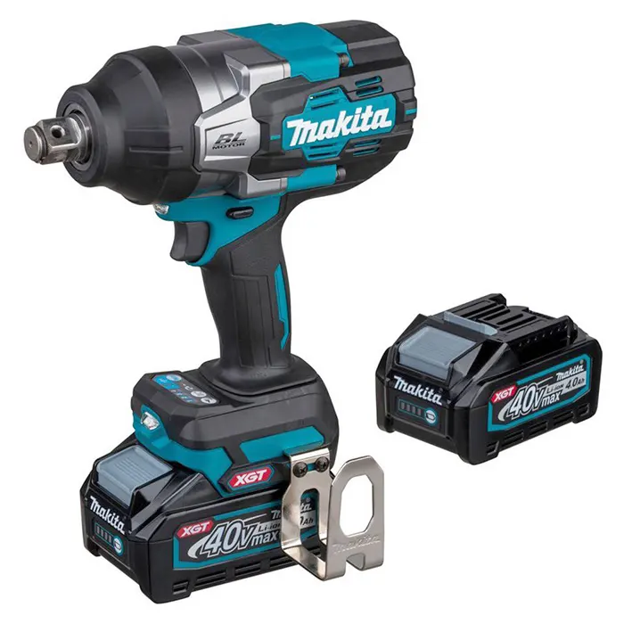 The Cordless Impact Wrench Makita TW001GM201 is powered by a 40V lithium-ion battery and an efficient Brushless motor with high power that provides up to – 1,800 rpm for unmatched fastening performance, with high torque and compact overall length for easy handling and control. The Cordless Impact Wrench’s ergonomically designed handle with a soft grip provides increased comfort on the job, and the trigger switch with full speed mode allows for less hand and finger fatigue. Additionally, Cordless Impact Wrench has Extreme Protection Technology (XPT) for improved dust and water resistance for operation in harsh conditions, variable speed allows the user to control the speed, reverse, quickly remove screws and other fasteners, brake for maximum productivity and increase operator safety, electronic 4-Speed that to adjust speed based on materials or applications, and built-in LED light to illuminate the work area for better visibility.