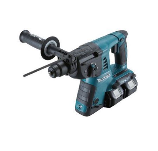 Rotary hammer -Powered by two 18V Li-ion batteries • Vibration absorbing handle provides comfortable operation. • Battery capacity warning lamp. • 3 Mode operation – Rotation only, Hammering with rotation and Hammering only. • Reverse switch operable by one hand.