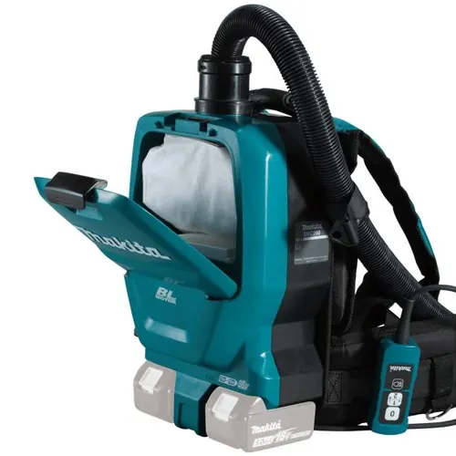 Makita Cordless Vacuum Cleaner DVC260ZX powered by a Lithium-ion Battery 36V (18+18), Delivers up to 90 min of run time. Lightweight for reduced operator fatigue. This Cordless Backpack Vacuum uses a HEPA Filter as the main filter to capture very fine particles effectively, The Controller is operable for on/off switching and high/low power selection. In addition to Brushless Motor for more productive, lasting longer, and charging faster, LED job light is for the job in the dark.