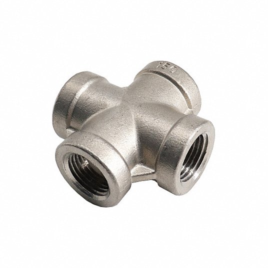 This GRAINGER APPROVED cross fitting is designed with 316 stainless steel featuring a higher nickel content for better corrosion resistance.