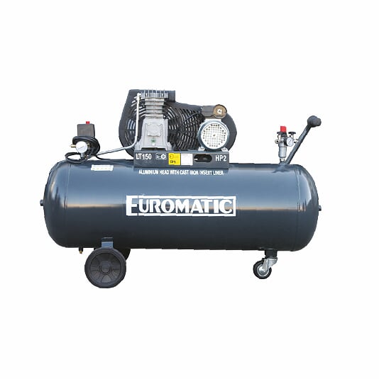 Euromatic Air Compressor 150 LTR, 2HP 220/60, 55903727 Aluminum Head With Cast Iron Insert Liner – ( Gray Color ) , Made in Italy
