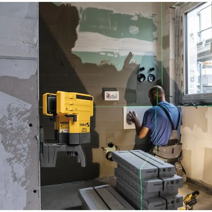 The Laser Spirit Level Stabila 19110 is a cross-line Laser that is an advanced tool that can help you level and align objects. It projects a horizontal and vertical line to make your tasks easier, such as hanging shelves, installing cabinets, and laying tiles. This versatile gadget is self-leveling, which means it will automatically adjust itself to level, making it user-friendly. Additionally, it has a long working range of up to 30 meters, making it suitable for use in large spaces. The Cross-Line Laser comes in a 3-piece set that includes the laser itself, a carrying case, and a multi-purpose platform. The platform allows you to mount the laser on various surfaces, such as walls, floors, and pipes. This feature makes it even more versatile and easy to use.