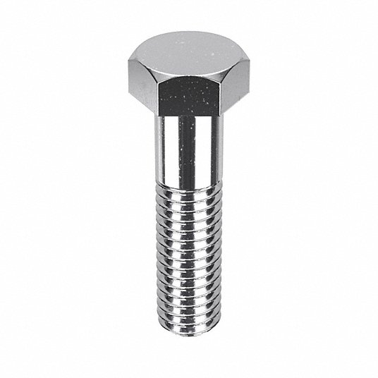 Hex Head Cap Screw: Steel, Chrome Plated, Thread 3/8Inch-16, Head Width 9/16Inch, 1 1/2Inch L, 5Pcs