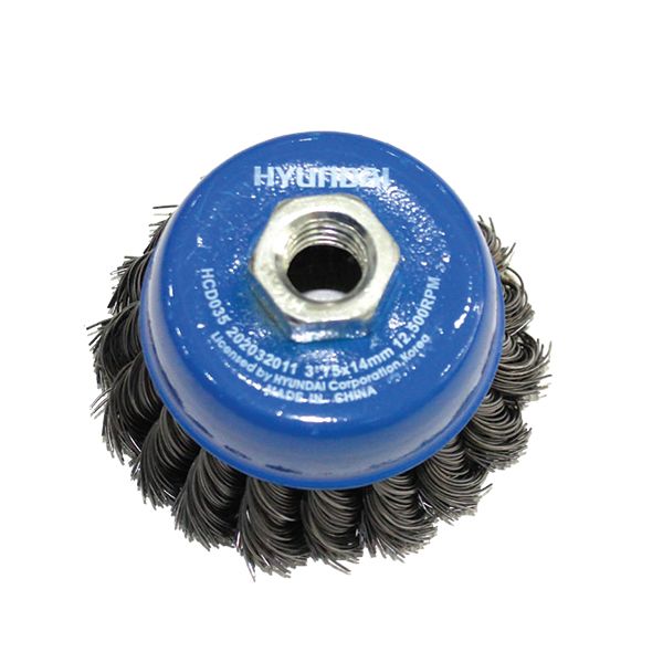 Hyundai Twisted Cup Brush (Material Type: Steel – Diameter (inch): 3 – arbor_hole_mm: 10)