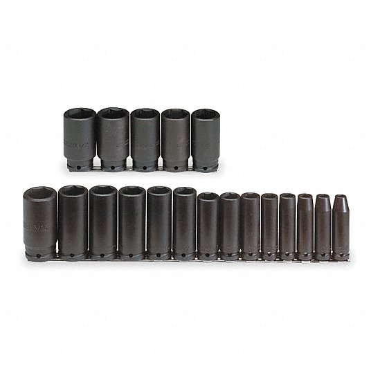 Impact Socket Set, Alloy Steel, Black Oxide, 1/2 in, Impact Rated Yes, Socket Depth Deep, Number of Pieces 19