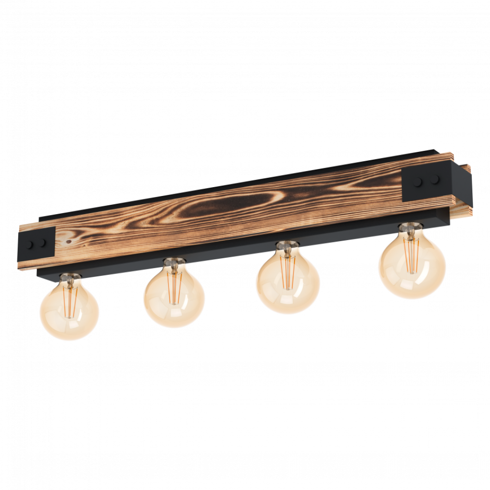 AYHAM ceiling light. Made of black steel and natural wood, it features four lamp holders and is perfect for any space such as the living room, bedroom, or hallway. Its modern design brings elegance and distinction to any corner.