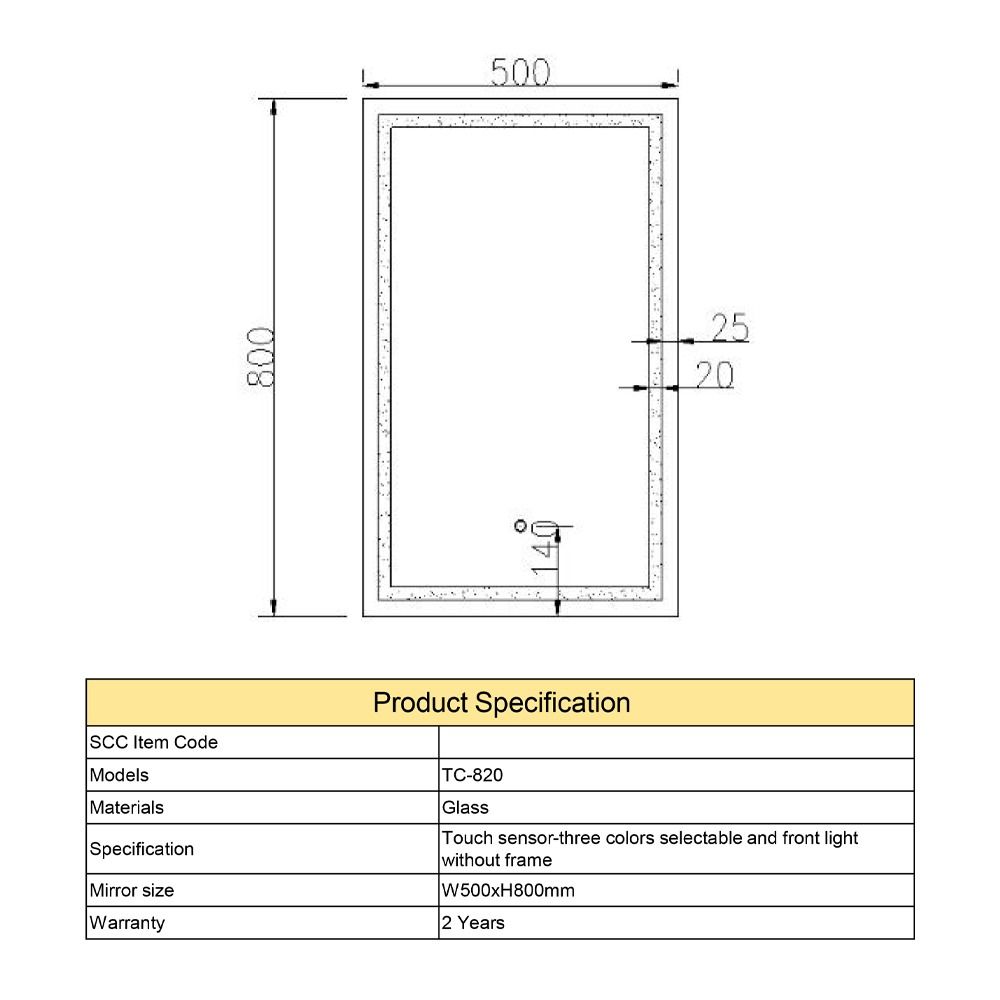 LED Mirror Rectangle (TC-820) 50×80 cm