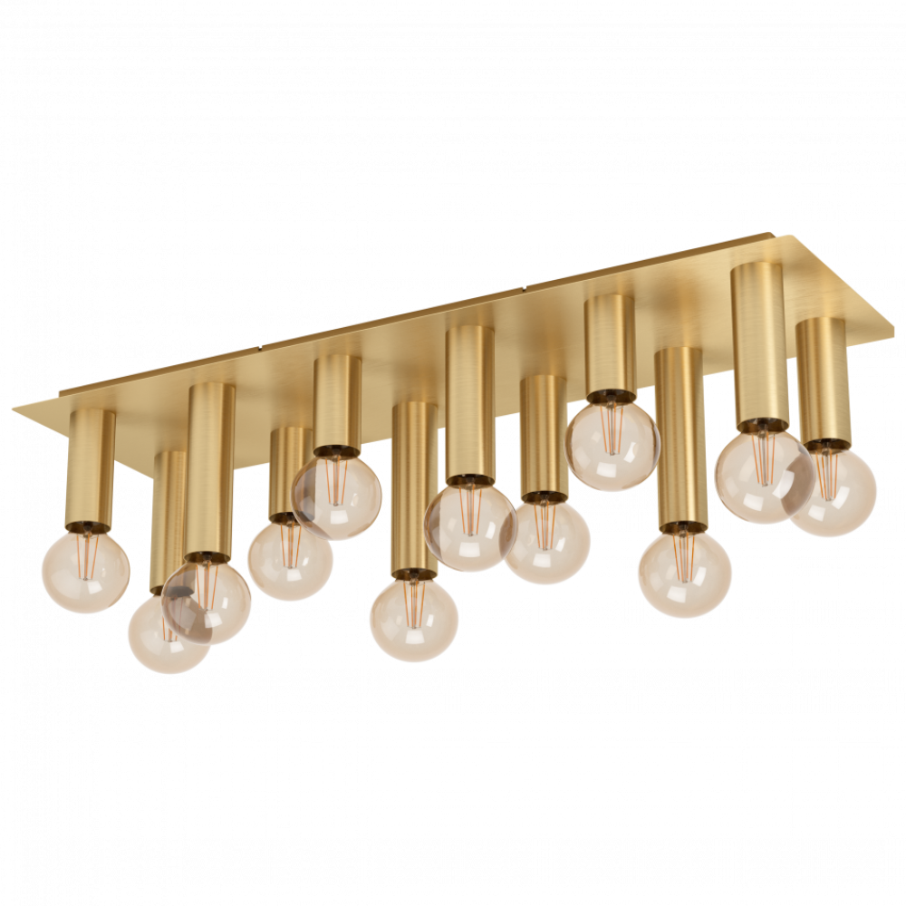 the MARZENO ceiling light features a modern brushed brass design with 12 cylindrical lamp holders. Over 90 cm in length, it adds a stylish touch to any space, from the kitchen to the living room or bedroom. E27 bulbs not included.