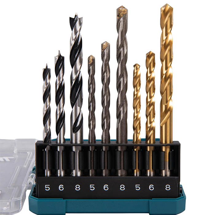 Comprehensive Bit Selection: Includes 3 brad point bits (5.5mm, 7mm, 8mm) for wood, 3 HSS bits (5mm, 6mm, 8mm) for metal, and 3 TCT bits (5mm, 6mm, 8mm) for masonry.