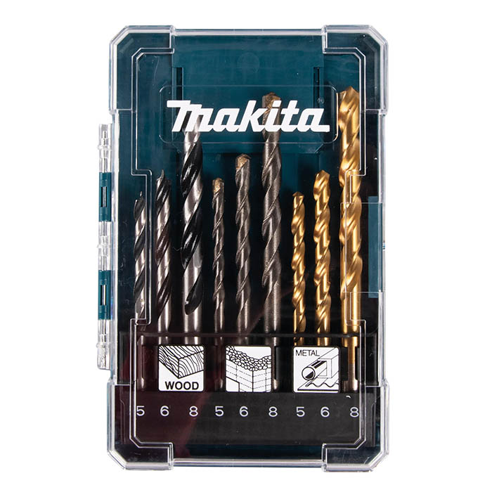 The Makita D-71962 Drill Bit Set is a versatile 9-piece toolkit tailored for a wide range of drilling applications across metal, wood, and concrete. Each bit is engineered to deliver precision and efficiency, featuring three high-speed steel (HSS) bits specifically designed for metal, three brad point bits for clean wood drilling, and three tungsten carbide-tipped (TCT) bits perfect for masonry tasks. The varying diameters of the bits (5mm, 6mm, and 8mm) ensure compatibility with common drilling needs while the compact plastic case facilitates convenient storage and transport.