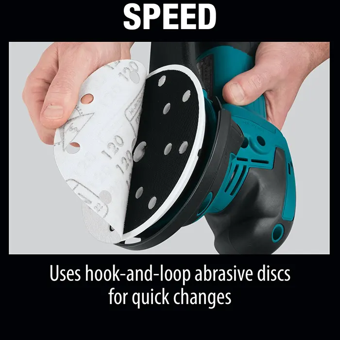 b) Traditional random orbit mode: For fine finish sanding and buffing.