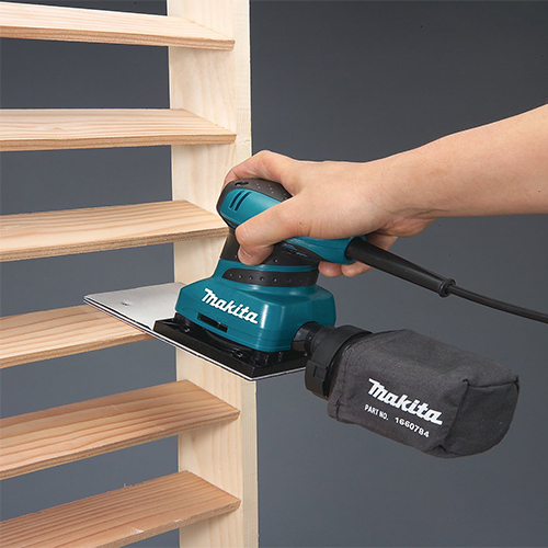 Makita Sander Machine For Wood BO4566 is powered by a Powerful 200W motor that provides 14,000 opm. Is a sanding machine with a rectangular base, ideal for sanding flat surfaces, windows, and shutters thanks to the reduced thickness of the base on which it adheres to the sandpaper. The Makita Sander Machine For Wood BO4566 also comes with a rectangular aluminum skid, a very slim plate, ideal for elements such as shutters, and also ensures a high oscillation speed while keeping the power tool stable. In addition, the Sander Machine For Wood has double insulation that protects the user, and the dust collector reduces the amount of dust produced during cutting which allows you to work efficiently and comfortably.