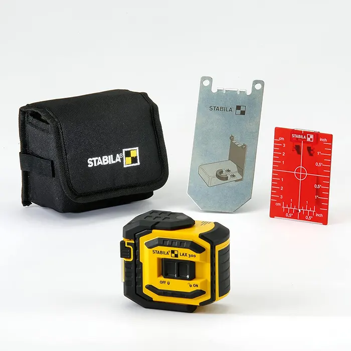 The Stabila Laser Spirit Level LAX 300 G is a self-leveling cross line and plumb dots laser level. The LAX 300 G is the ideal partner for interior construction professionals who need accurate laser lines with optimum visibility. The Laser Spirit Level has long laser lines to make your work even more efficient and productive. Perform plumb-line and leveling work on the floor, wall, and ceiling at the same time – making the laser a true all-rounder with numerous areas of application. The LAX 300 G can be used directly on the floor or on a tripod or attached to metal surfaces via its built-in V-groove magnet and fastened to walls with its wall bracket. Among other things, the LAX 300 is a great wall laser level.