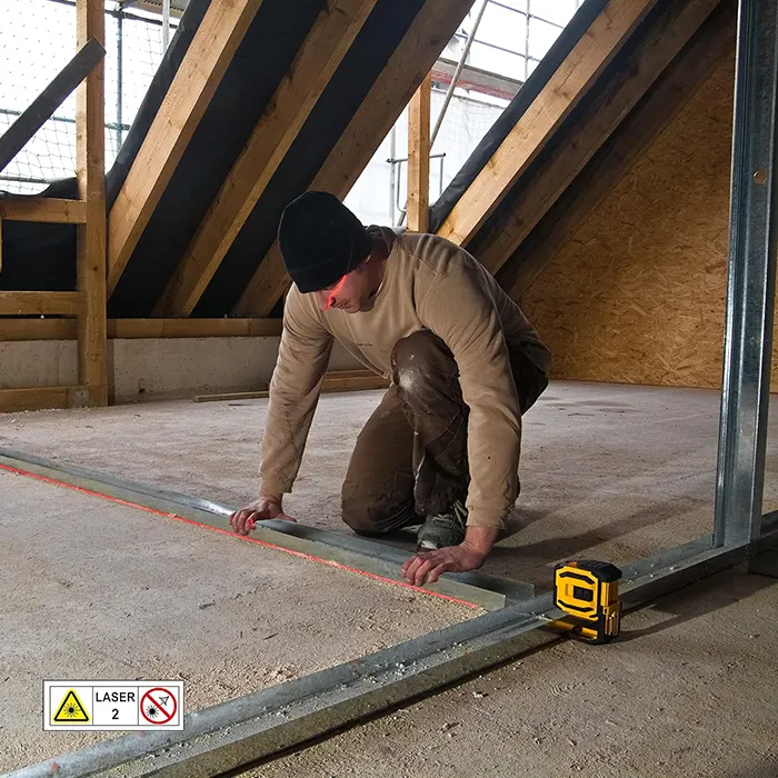 Optimal for working directly on the laser line. For the transfer of the layout from the floor to the roof. For quick and precise plumbing.