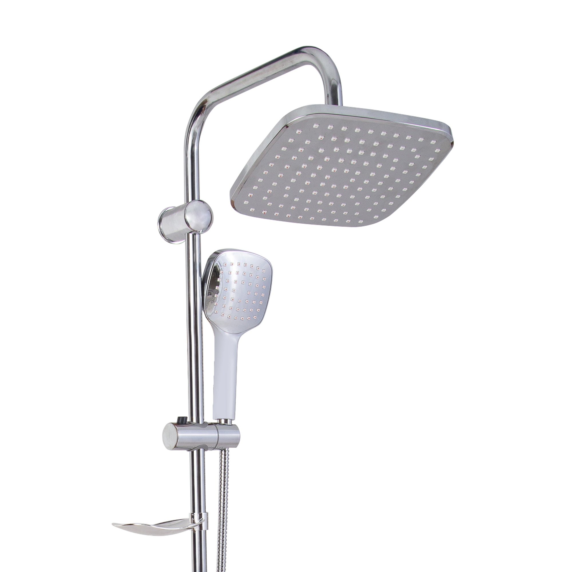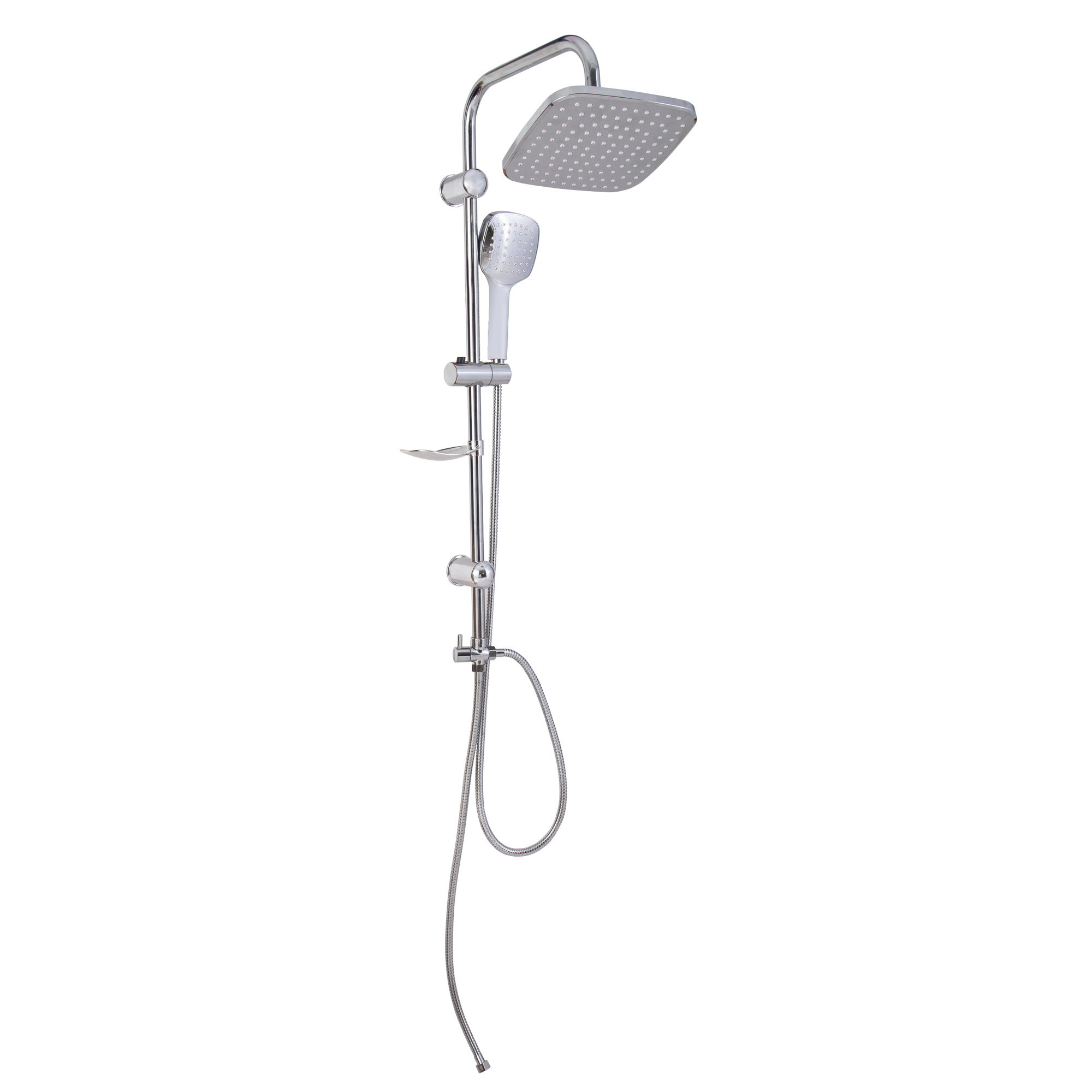 Shower height can be adjustable between 85 cm- 130cm. Thenhand shower sprayer can be slid on the rod and rinses your body at an idealnheight.