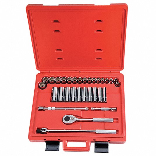 Socket Wrench Set, 1/2 Inch, Number of pieces 31 ,12 Point, Socket Size Range 10 mm to 26 mm
