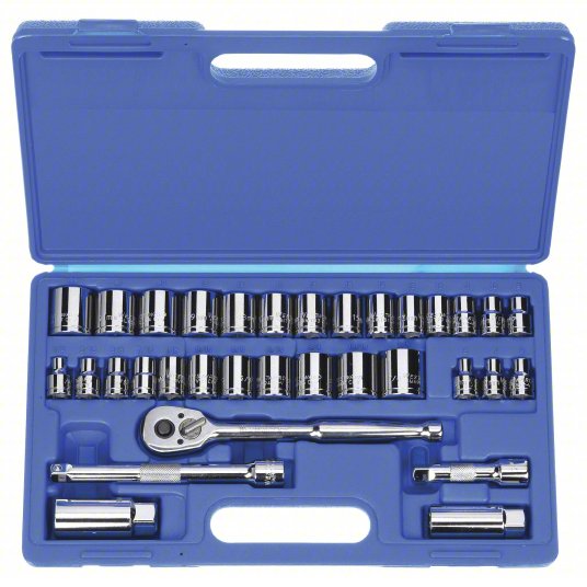 Socket Wrench Set, 3/8 inch Drive Size, 33 Pieces, (28) 12-Point