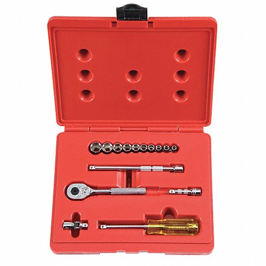 Socket Wrench Set, Socket Size Range 3/16 inch to 9/16 inch, Drive Size 1/4 inch, Drive Type Hand, Chrome
