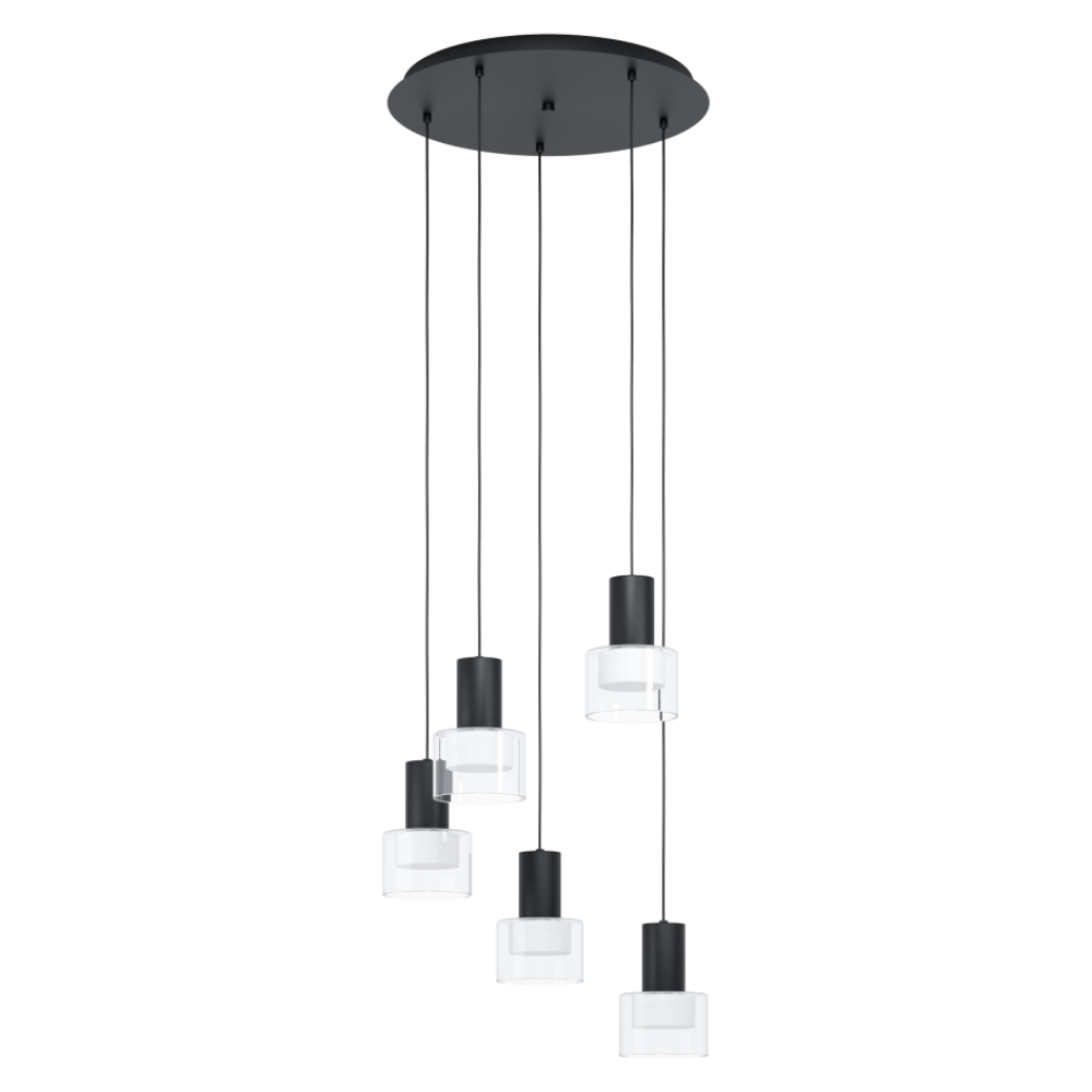 Bring charm and style to your space with the MOLINEROS Chandelier light by EGLO. With its sleek glass shades and bold black metal frame, this fixture adds a refined glow that enhances the atmosphere. Ideal for dining areas, living rooms, or commercial spaces that need a standout touch.