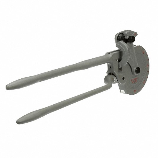 The RIDGID® ratcheting tubing bender has high-geared mechanical ratios to bend heavy-wall steel tube, stainless steel tube, and hard copper water tubes (types K and L). – Produce uniform bends up to 180°. Calibrated at 15° from 0° to 180°. – High Geared Mechanical Ratios – For Heavy Wall Steel Up To 1/8 in Wall Thickness, Stainless Steel Up To 3/32 in Wall Thickness, Type K and L Hard Copper Tubes