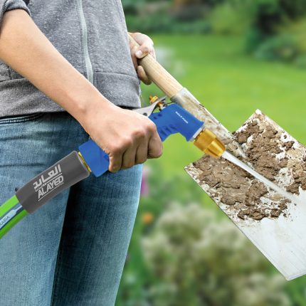 water and garden set consisting of (a wall holder for water and garden water 16 mm 30 meters – water power jet with a soapbox that controls the spraying path) with an aesthetic appearance and keeps the hose from knots and damage and helps ease storage and is characterized by flexibility of use